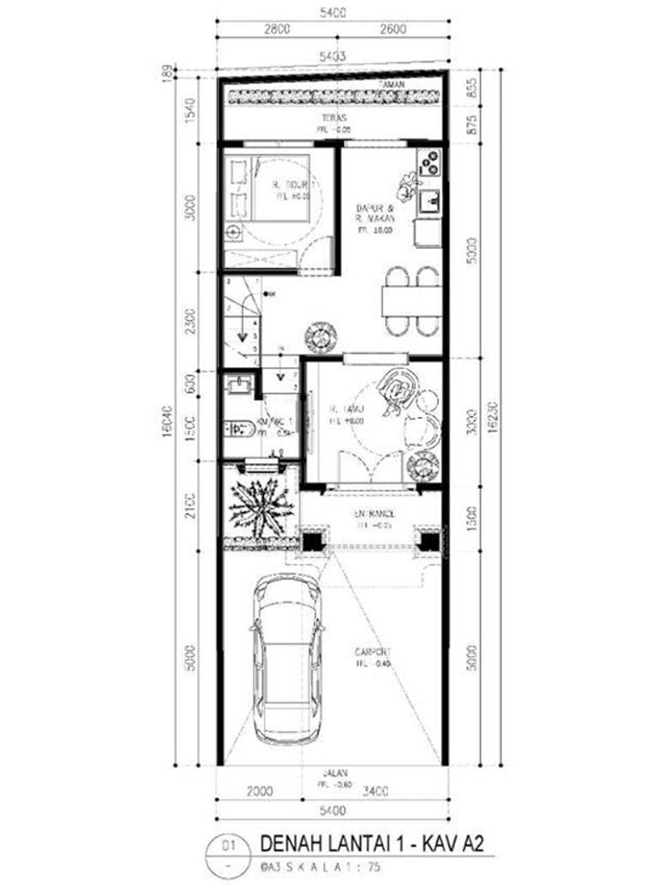Ruang tamu, ruang keluarga, dapur, ruang cuci jemur, balkon