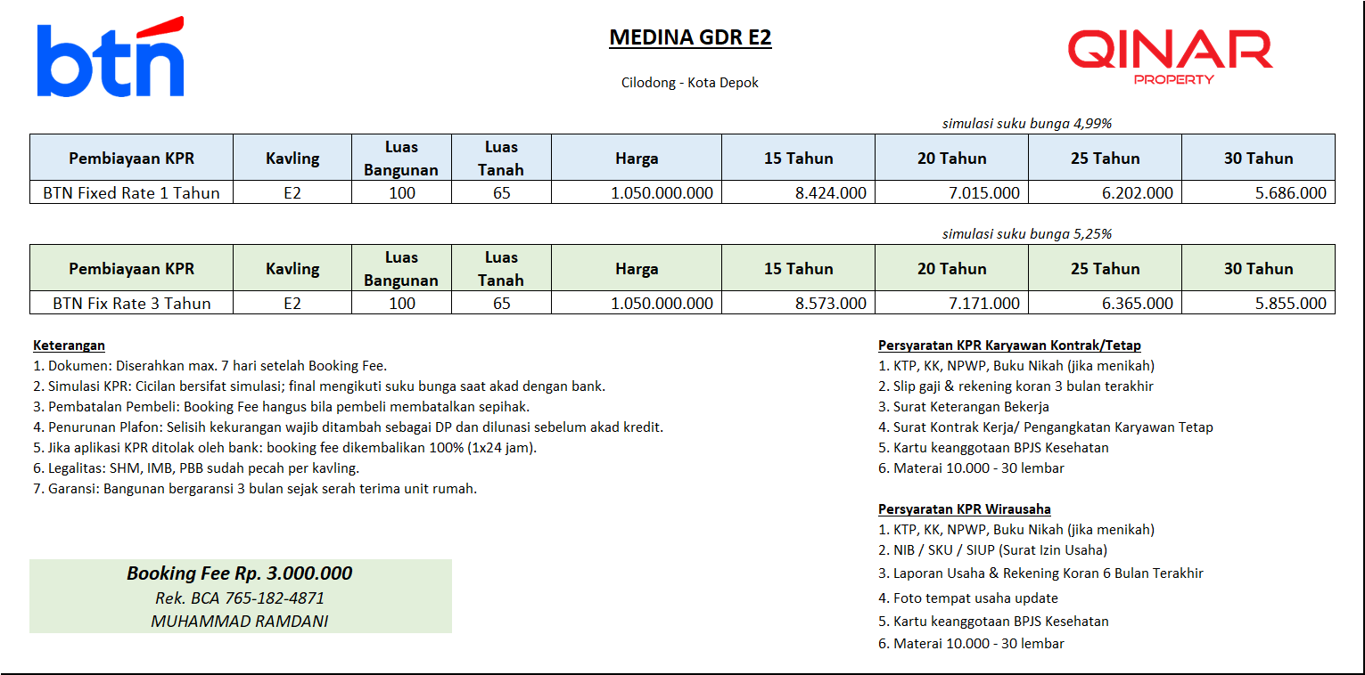 Bekerjasama dengan KPR bank: BSI, BTN Syariah, BTN